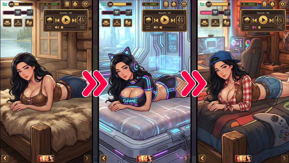 Your personal NSFW Lo-Fi haven. Customize characters, collect lewd scenes, and enjoy a mix of relaxing beats and ambient erotic sounds.